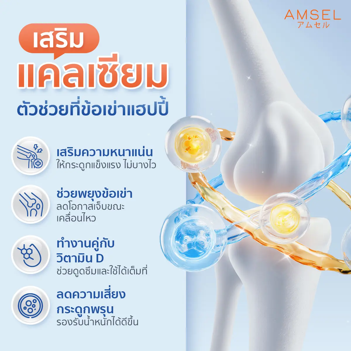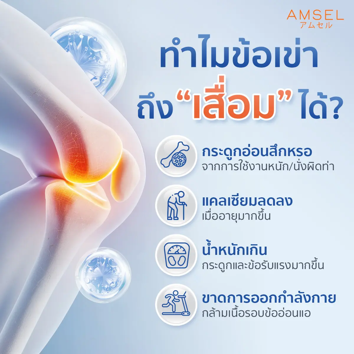 ให้ Amsel ช่วยดูแลข้อเข่าเพื่อกระดูกแข็งแรง ชีวิตก็แอคทีฟแบบไม่กร่อยกัน 🦵✨