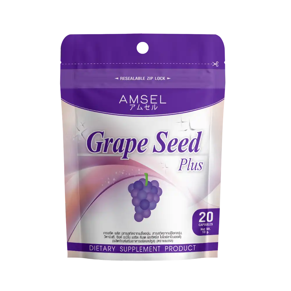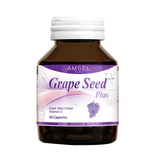 Amsel Grape Seed Plus เป็นผลิตภัณฑ์เสริมอาหารจากสารสกัดเมล็ดองุ่นและเปลือกองุ่น ซึ่งเป็นแหล่งของสารต้านอนุมูลอิสระในกลุ่มโพลีฟีนอลและโปรแอนโทไซยานิดิน (OPCs) ตามธรรมชาติ พร้อมเสริมด้วยวิตามินซี, ซิงค์ในรูปแบบอะมิโน แอซิด คีเลต ที่ช่วยเพิ่มการดูดซึม และ Citrus Bioflavonoids ที่ช่วยส่งเสริมการทำงานร่วมกัน เหมาะสำหรับผู้ที่ต้องการดูแลสุขภาพผิว