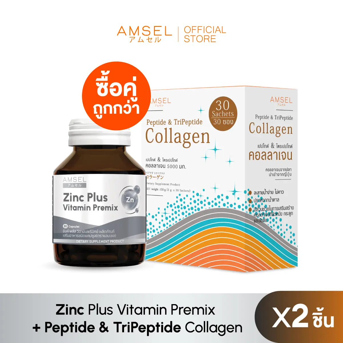 ดูแลครบในชุดเดียว Zinc Plus Vitamin Premix + Peptide & Tripeptide Collagen